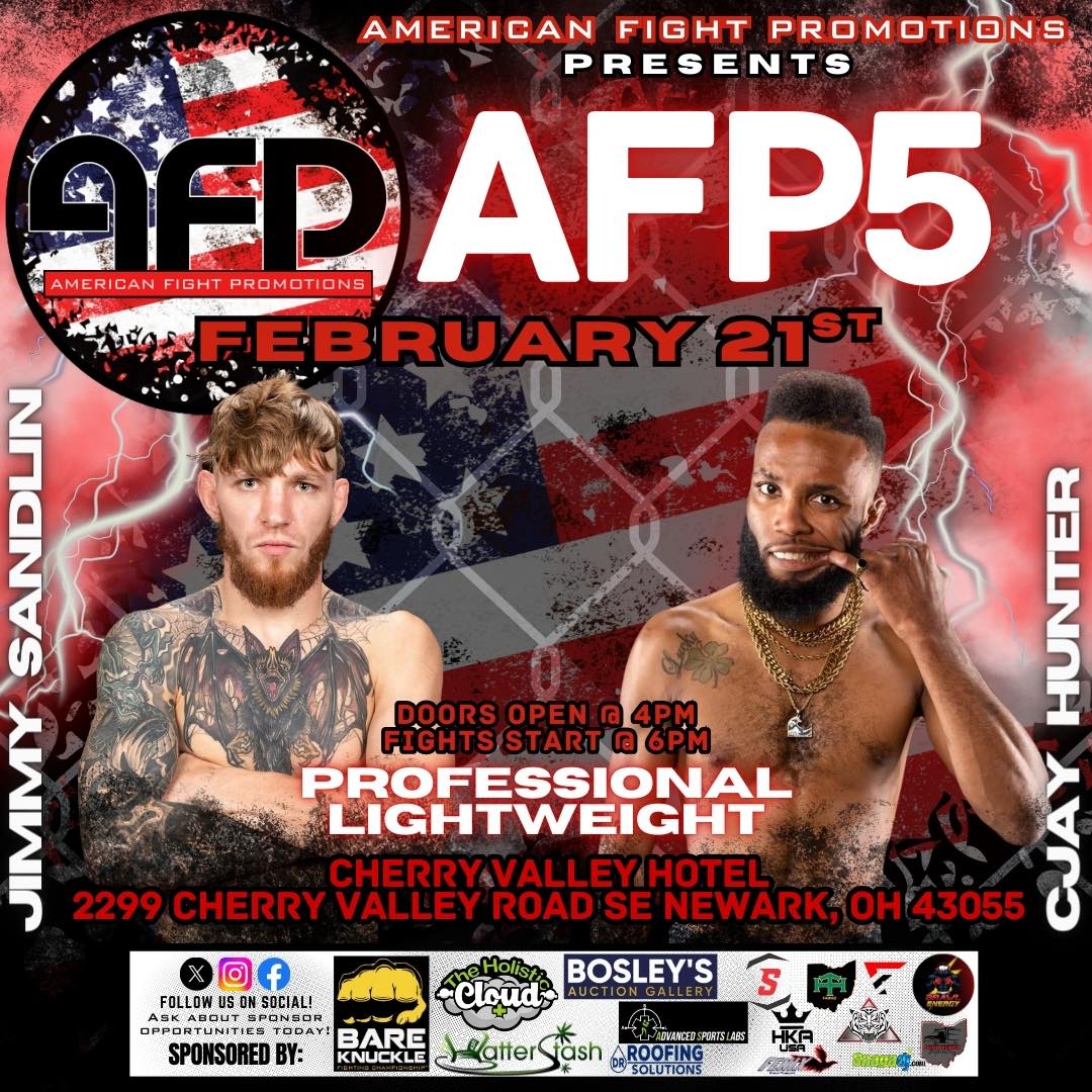 AFP 5 is set to take place on February 21st in Newark, Ohio. The Cherry Valley Hotel will be rocking as this card includes multiple professional bouts and amateur title fights. Carnage Media fans will recognize a few familiar faces on this stacked card. Let’s take a look at those matchups.